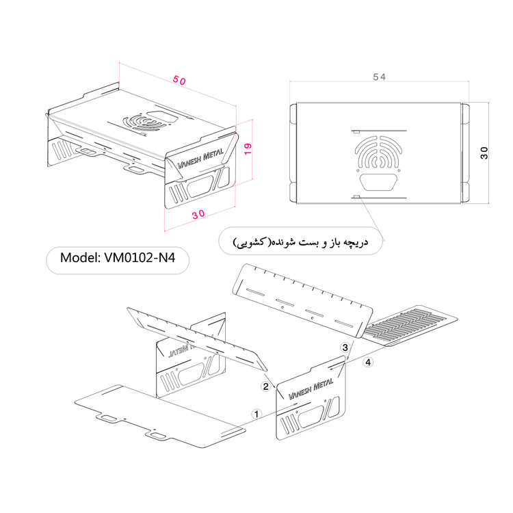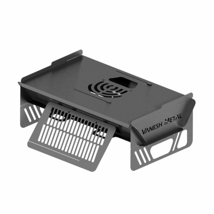 اين بار محصول جدید ونش متال با یک ویژگی خاص دغدغه ای دیگر از مشتریان رو حل کرده و قطعه ای اضافه شده که این قطعه هم حکم سینی گرد گیرو داره که زیر منقل قرار میگیره منتها اول باید پیچ روی پنل های کنار بسته بشه تا سینی روی پیچ ها بشینه و هم حکم درپوش داره زمانی که دریچرو باز کنید منقل شما تبدیل به یک اجاق میشه و میتونید طبخ درون قابلمه یا هر ظرف دیگه ای انجام بدید.