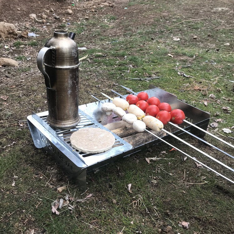منقل از متریال مرغوب برای استحکام بیشتر و مقاوم در برابر حرارت و انعطاف پذیری و رنگ الکترو استاتیک مشکی / صفحه گریل نقره ای گالوانیزه ضد زنگ برای طبخ و شستشو با خیال آسوده / حمل راحت مناسب گردشگری و کمپ و مسافرت مونتاژ آسان به همراه کاور منقل و پایه