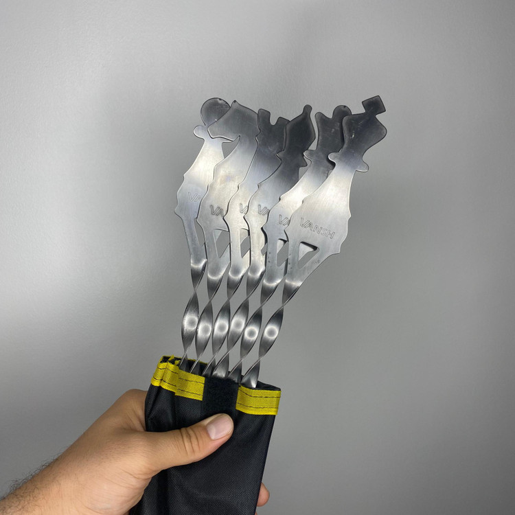 این ست شامل ۶ عدد سیخ استیل دستهدار با طراحی حرفهای و ارگونومیک است که بههمراه یک استند دیواری استیل عرضه میشود. ویژگی خاص این استند، قابلیت جایگیری تا ۱۲ سیخ است که آن را به گزینهای مناسب برای مهمانیها و خانوادههای پرجمعیت تبدیل میکند. همچنین طراحی آن به گونهای است که برای سیخهای دستهدار نیز کاملاً مناسب و کاربردی است.