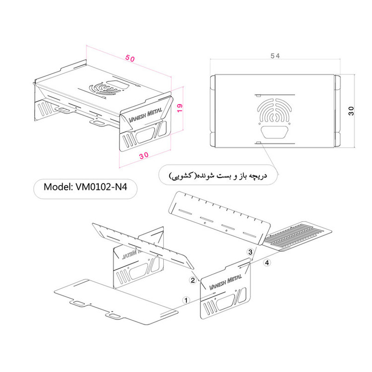 منقل تاشو ونش متال مدل سفری N4_1.25MM گریل کوتاه